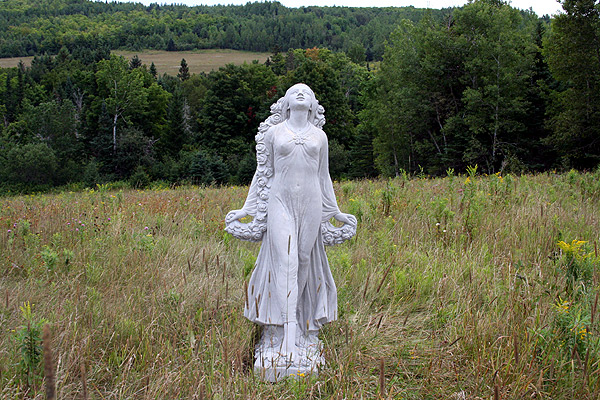 Suffering thru all types of weather, and no one sure of when she appeared, why she stands and waits in this Maine field. Called the “statue lady” by some locals, the few that know she is north of the Knoxford Road, north of Mars Hill Mountain in Mars Hill.